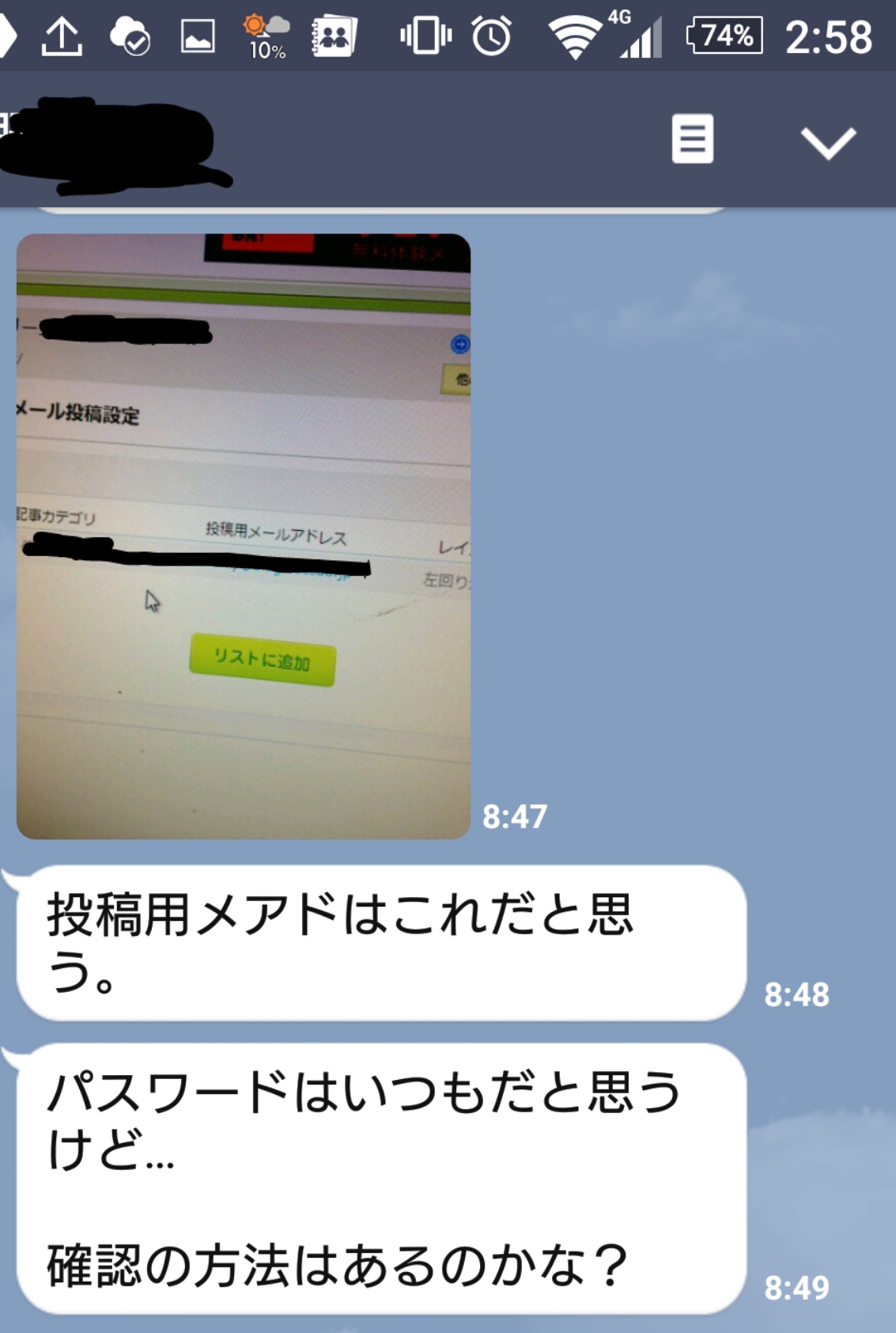 Seesaaブログをやっている友人からのLINEでログインできなくて困ってるというヘルプの依頼がきました。