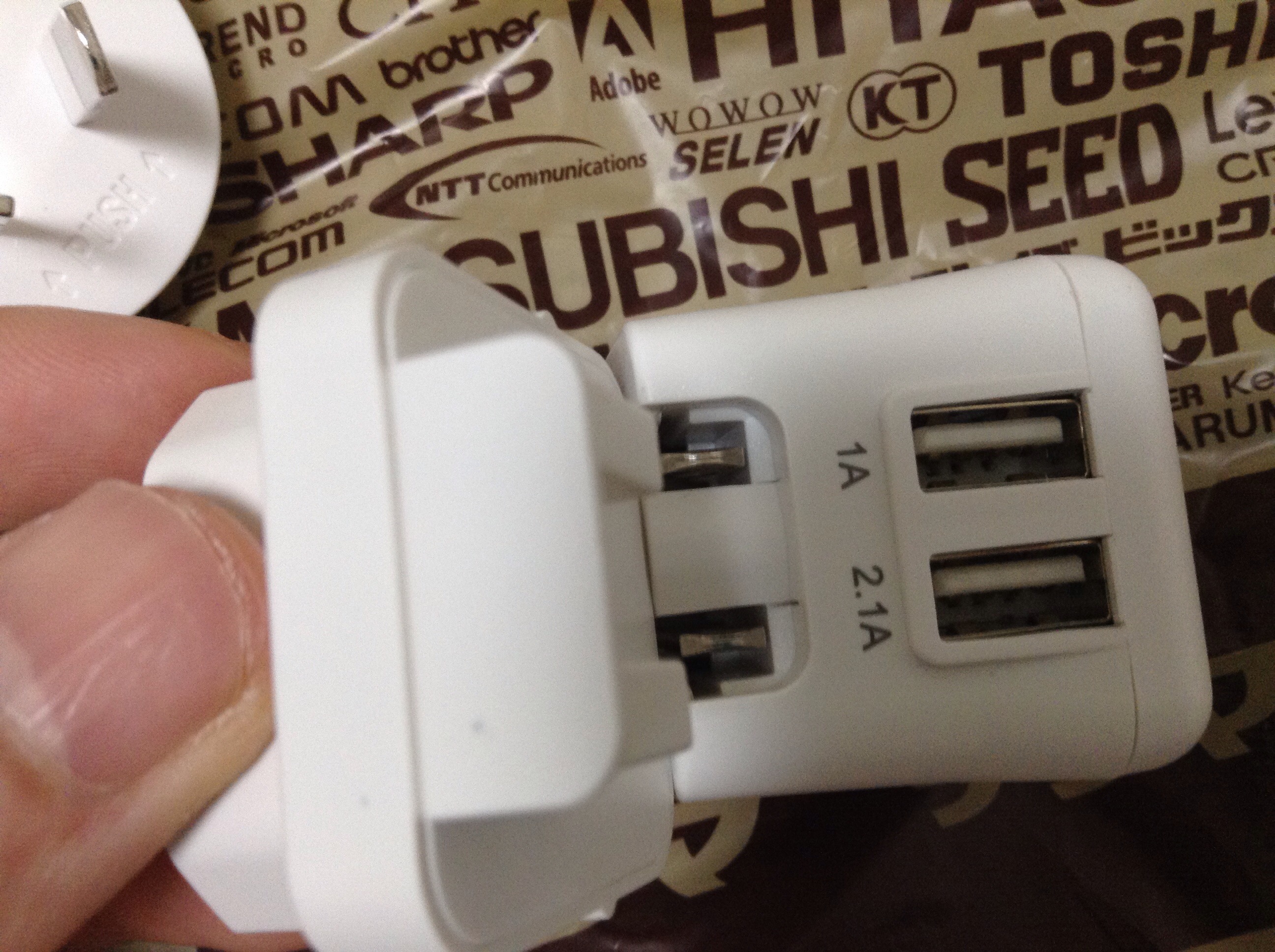 2ポートあるので、バッテリー容量の大きいiPhone6やタブレットは2.1Aを使えます。